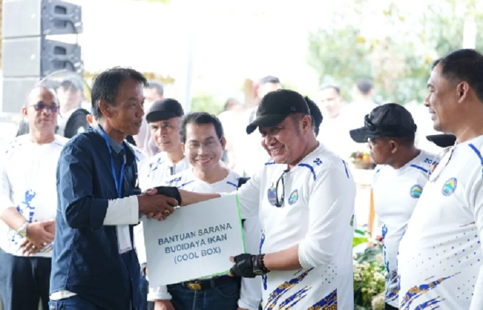 Penyerahan bantuan dilakukan secara simbolis pada kegiatan Dialog Tani, Nelayan, dan Penggiat Pariwisata yang berlangsung di Pantai Bidadari OKU Selatan pada Sabtu (15/11/2025).