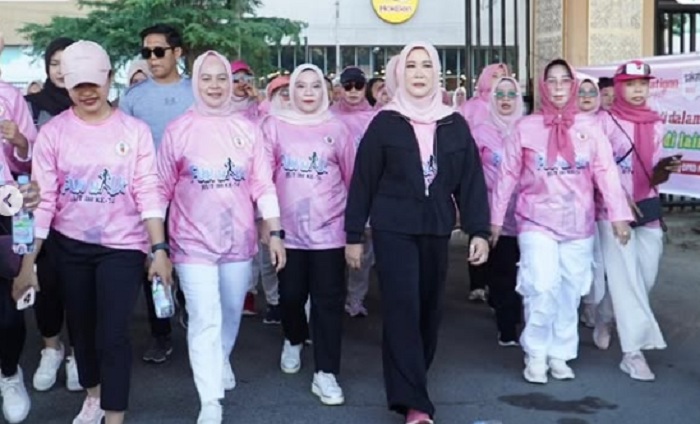 Acara ini juga dimeriahkan oleh kehadiran Ketua Tim Penggerak PKK Provinsi Sumsel, Hj. Feby Herman Deru, yang tampak antusias menyapa para peserta dan turut berjalan bersama mereka.