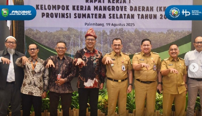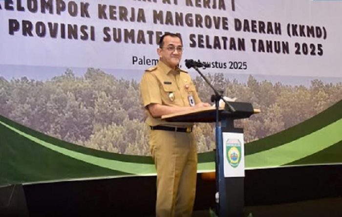 kanalsumsel.com/, PALEMBANG.- Sebagai upaya terus melestarikan hutan mangrove yang menjadi garda terdepan perlindungan wilayah pesisir, Gubernur Sumsel H. Herman Deru yang diwakili oleh Sekretaris Daerah Sumsel H. Edward Candra menghadiri Rapat Kerja I Kelompok Kerja Mangrove Daerah (KKMD) Provinsi Sumsel Tahun 2025. Rapat ini digelar di Hotel Santika Premier Palembang, Selasa (19/08/2025).